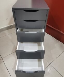 This unit is equipped with drawer stops to prevent excessive extension, ensuring functional convenience. Its finished back allows versatile placement in any part of the room, guaranteeing aesthetic appeal from every perspective.