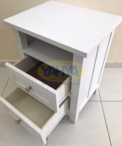 The drawers are thoughtfully designed with an English interlocking pattern and waxed wood latches, providing smooth movement and secure closure. The half moon design keeps the drawers in place, preventing any accidental spills. To add a vibrant touch to the room, the wardrobe is painted with water-based multi-use paint, guaranteeing a rich and deep color for each piece.