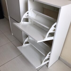 Now, let us offer you an ingenious solution to your shoe storage dilemma – the remarkable BISSA shoe cabinet. A blend of practicality and sophistication, this cabinet presents an ingenious approach to organizing your shoe collection in your entryway, thereby optimizing your spatial layout effectively.