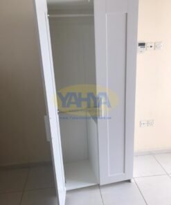 “Small spaces require smart storage solutions. This wardrobe features a clothes hanging rail for shirts and dresses, an interior shelf for neatly folded items like shirts and jackets, and also provides space to hang your longer clothes.