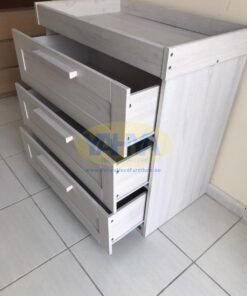 Versatility of Use: In addition to its function as a drawer cabinet and changing unit, the top portion can be transformed into a changing table as your child grows. This feature adds extra value and makes it a long-term investment in furnishing your child’s room.