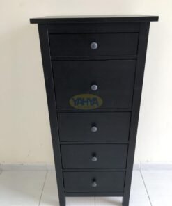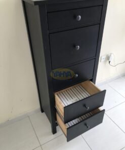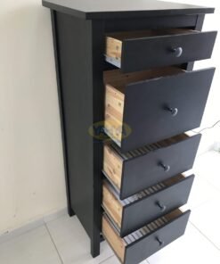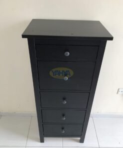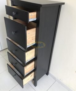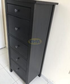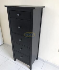 Timeless beauty using wood from more sustainable sources. A traditional look in a warm black finish with modern functionality like quiet, smooth-running drawers. Remember to pin it to the wall.