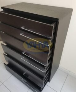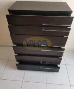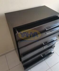 Perhaps you’re in search of an elegant chest of drawers for your bedroom. The described chest, with its smooth-running drawers and a variety of finishes, is not just a mere furniture piece but a clean expression that complements your room’s aesthetics. It’s not just about visual appeal; the practical aspect of having smoothly operating drawers with a pull-out stop ensures that functionality is not compromised. And the best part? This exquisite piece is available for sale as used furniture for sale at “Yahya Used Furniture”, ensuring you acquire it at a fraction of the cost without compromising on quality.