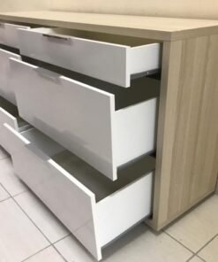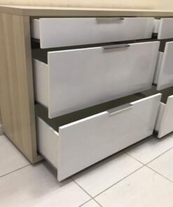 “We have an exceptional offer for a gently used cabinet in excellent condition, with a clean design that suits the bedroom or any other place you choose for it. This cabinet features smoothly sliding drawers, making it easy to access its contents. Additionally, it comes with a variety of finishes that you can choose according to your personal style.