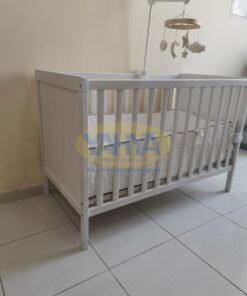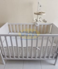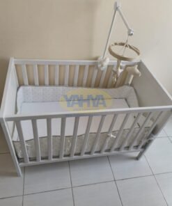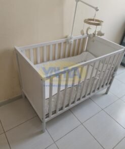 Introducing our exquisite baby cot – a haven for peaceful slumbers. Crafted with a timeless design, resilient materials, and meticulous attention to detail, this cot is a versatile choice that adapts to your child’s growth. As your little one grows, you can lower the cot’s base and even remove one of its longer sides, ensuring it evolves with your child’s needs.