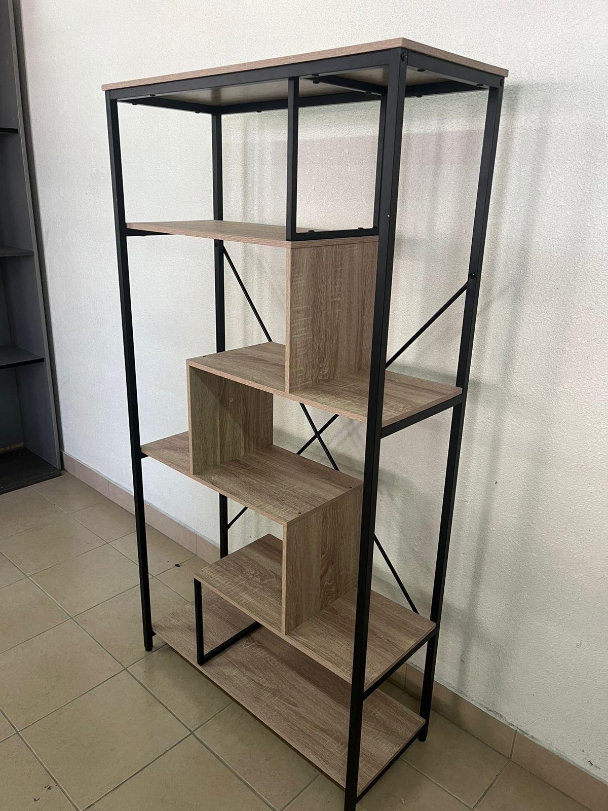 Evergreen Victor Large Bookshelf with Powder-Coated Steel Frame, Grey