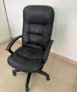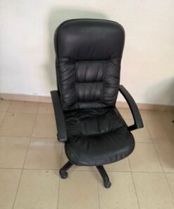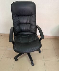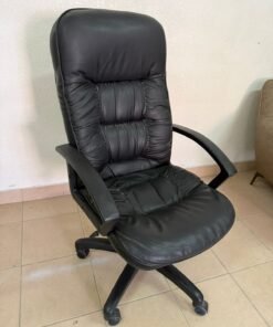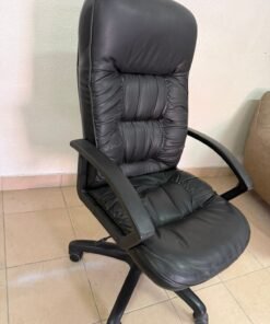 Executive office chair with high back and black faux leather upholstery
