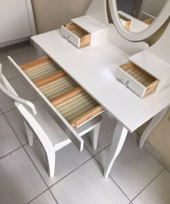 Ultimately, this dressing table transcends the ordinary; it’s a testament to your refined taste, infusing a unique romantic charm into your space. Revel in its versatility as an elegant dressing table or a practical workstation, making it the centerpiece that adorns your environment, transforming it into a place of extraordinary beauty and inspiration.