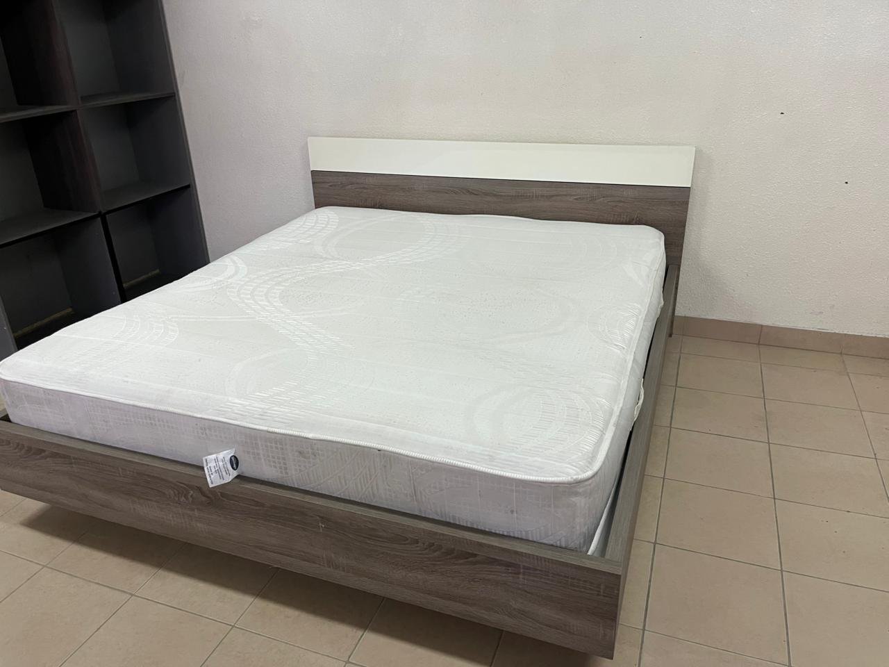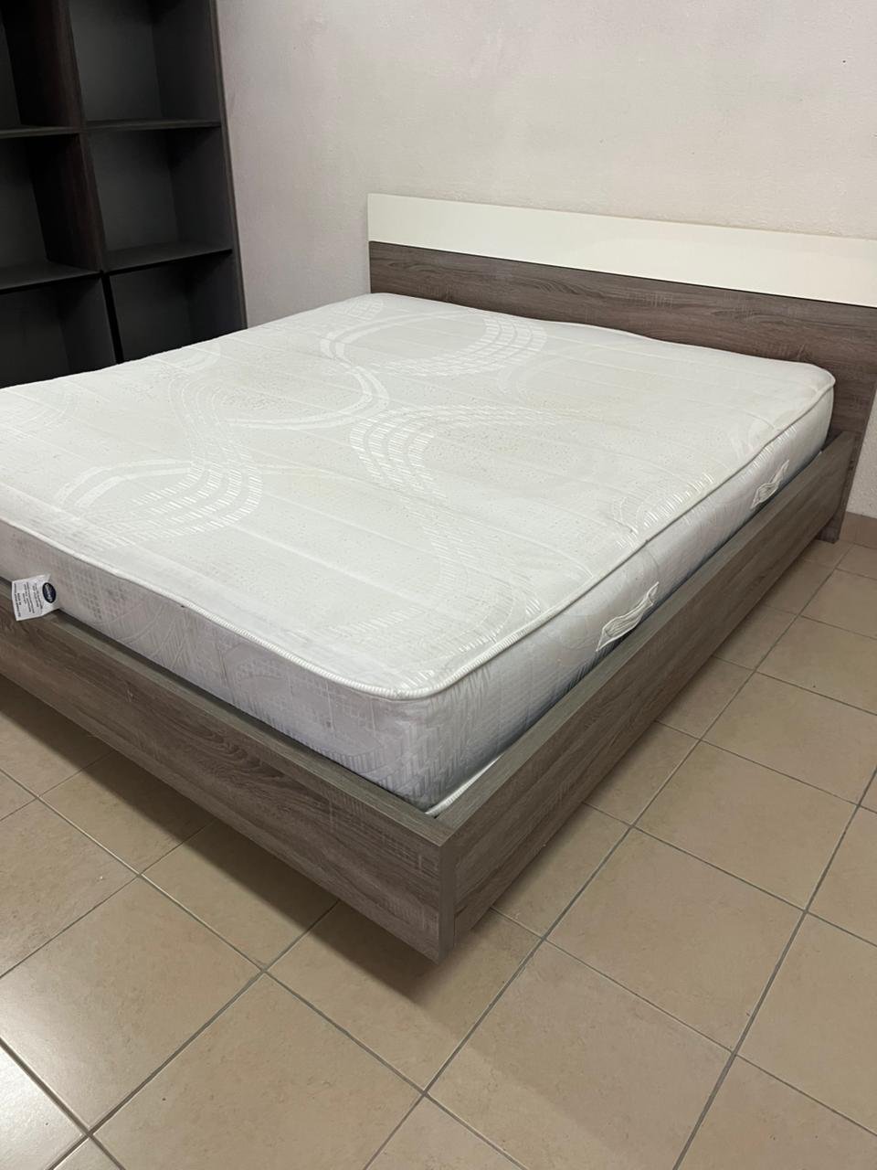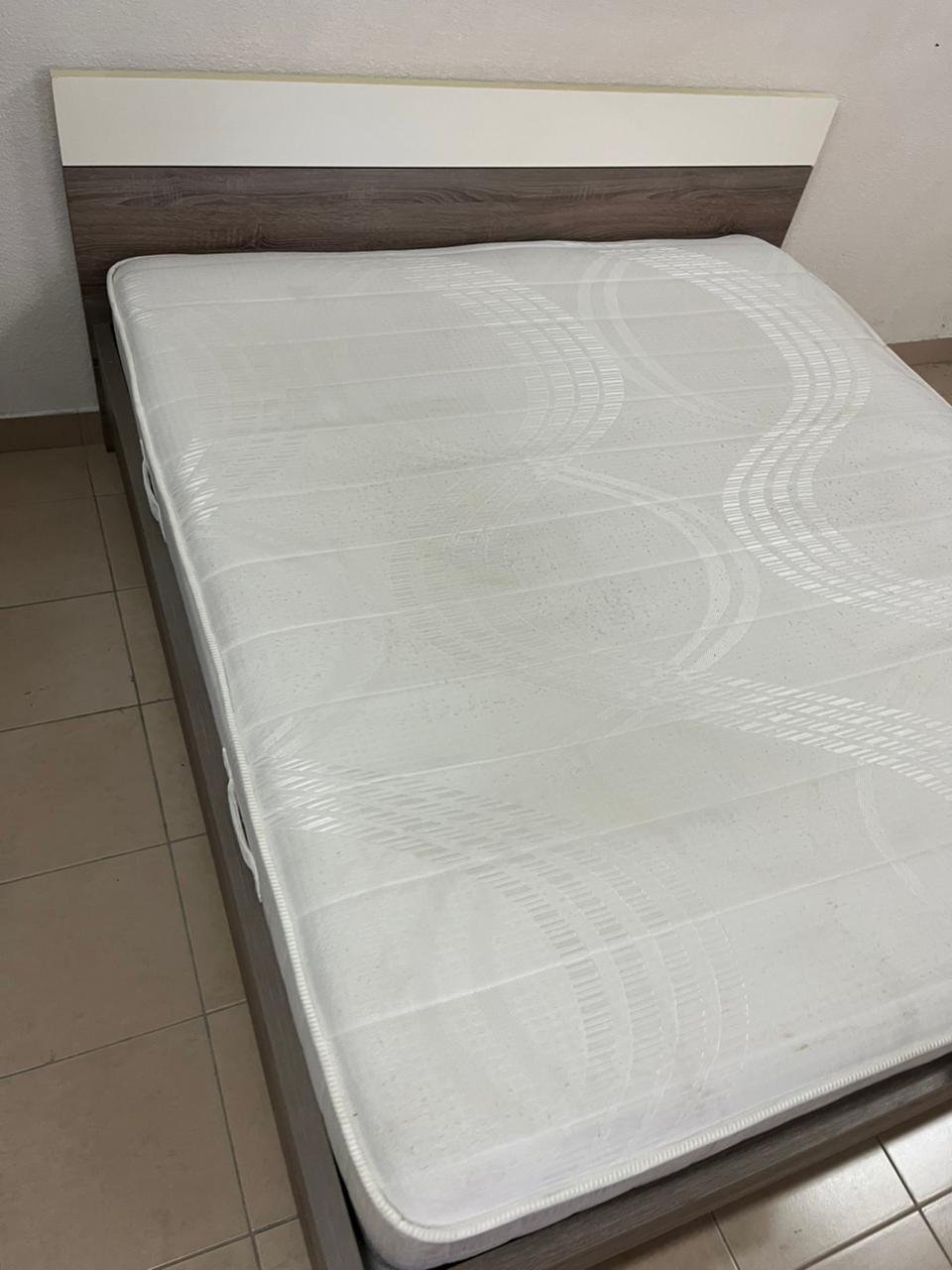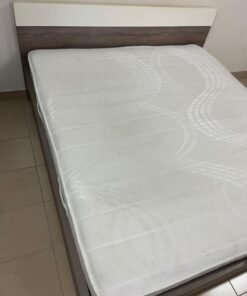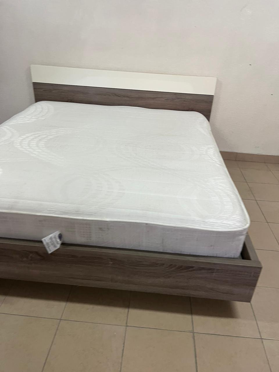 Home Centre double wooden bed with white mattress