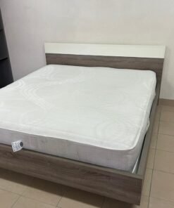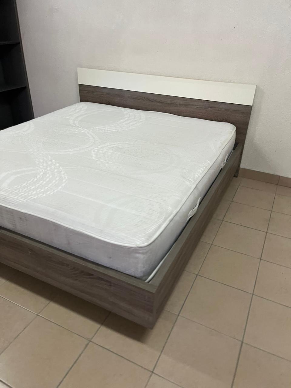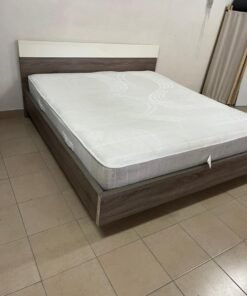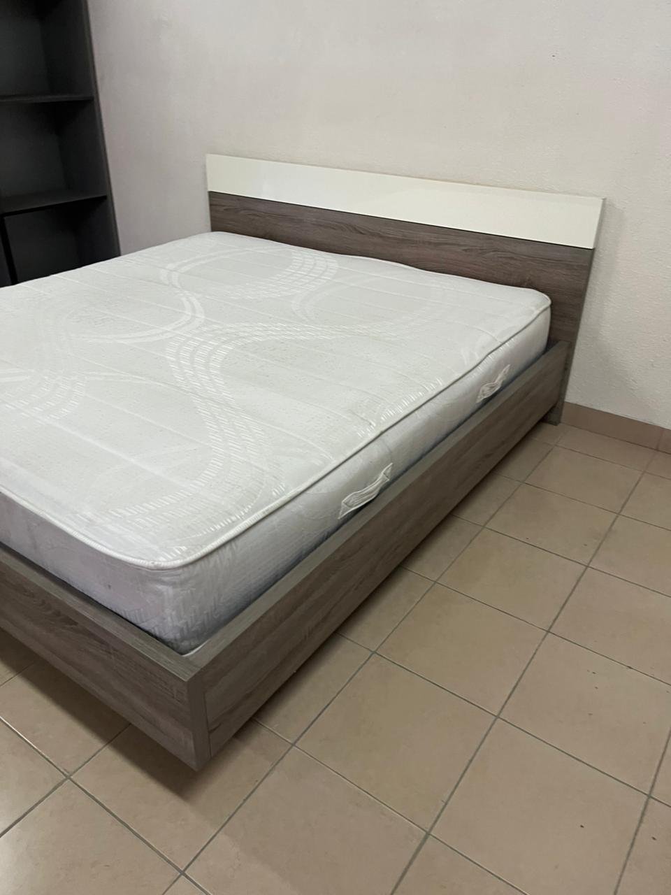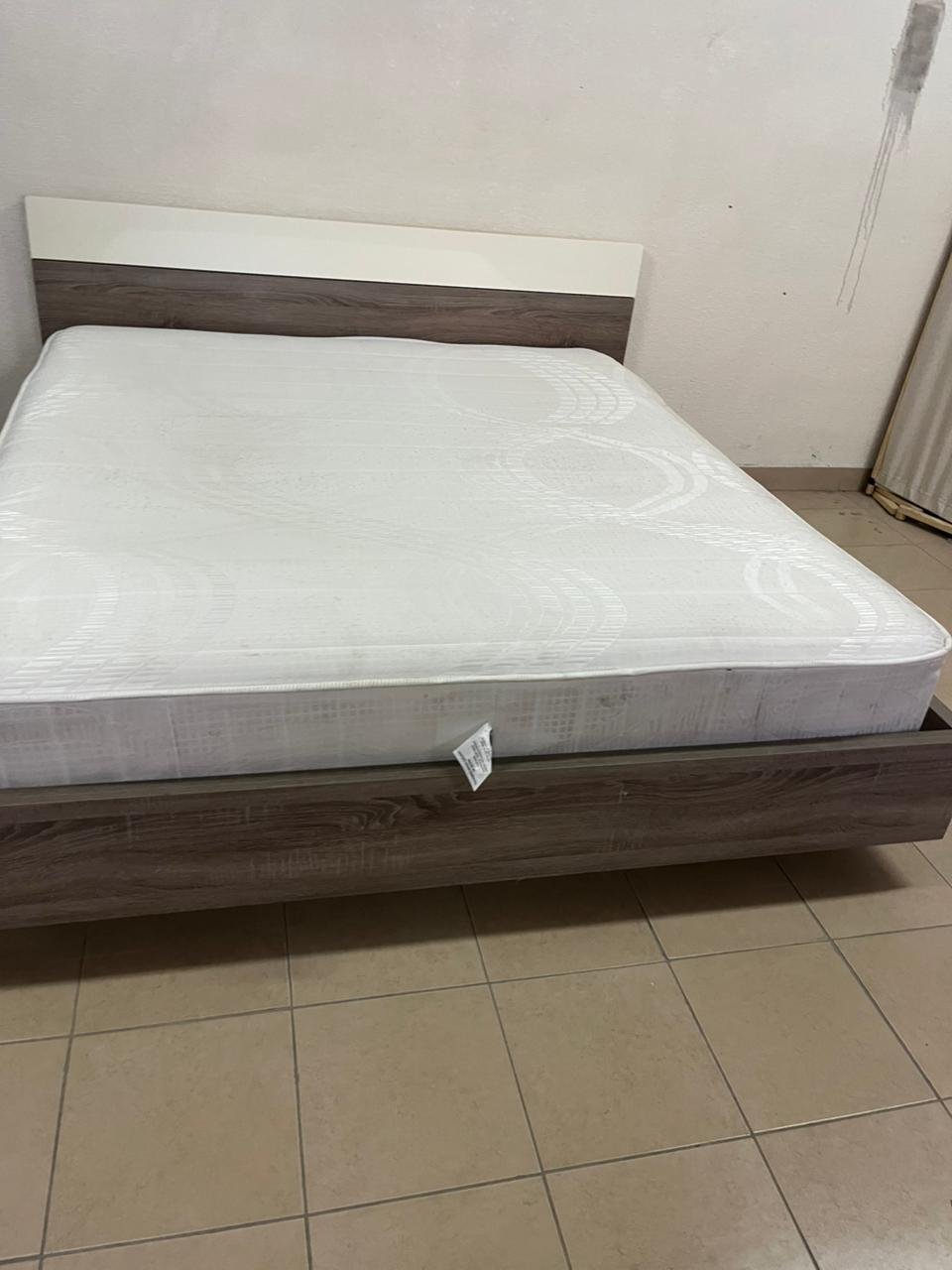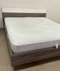 Home Centre double wooden bed with white mattress