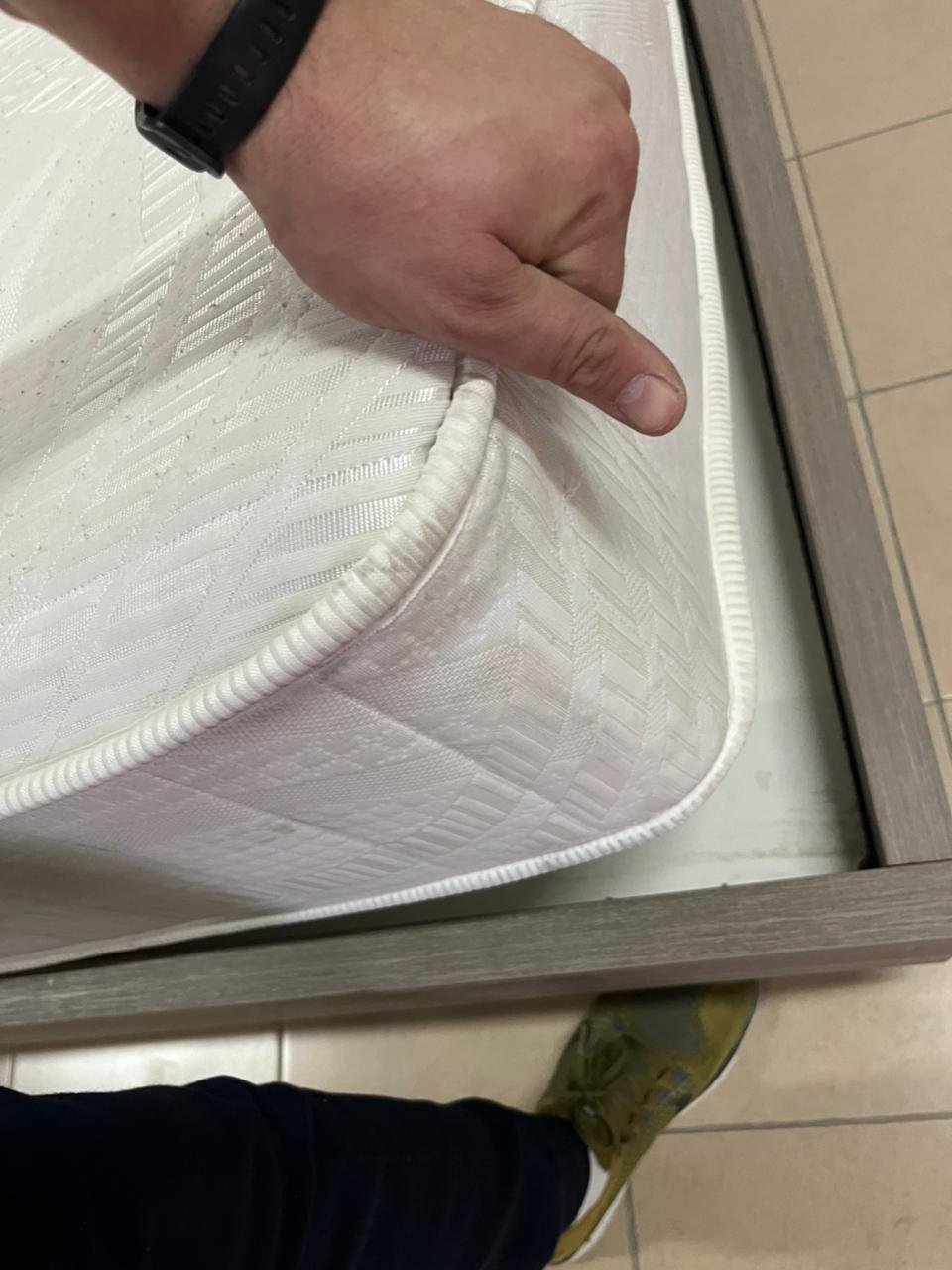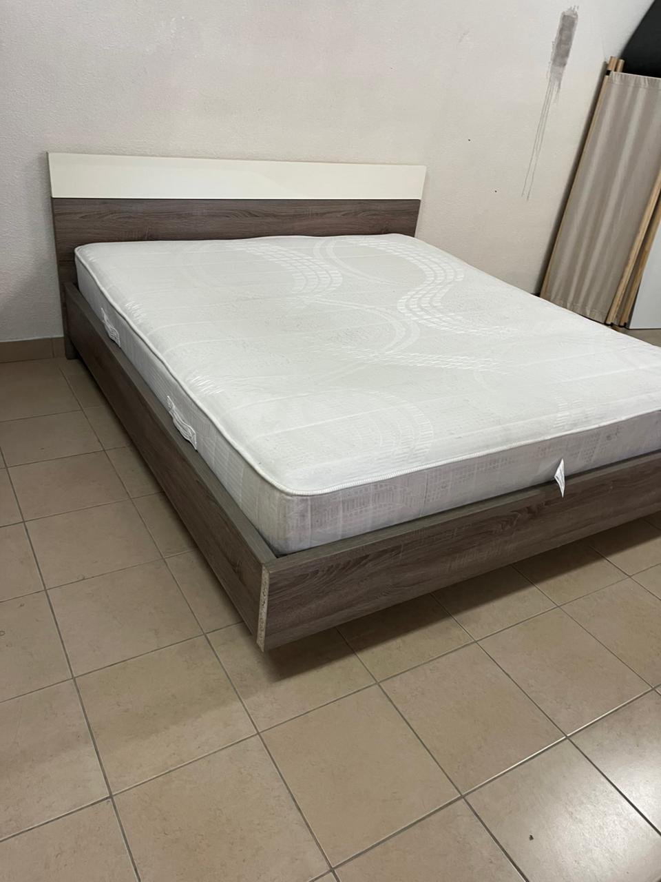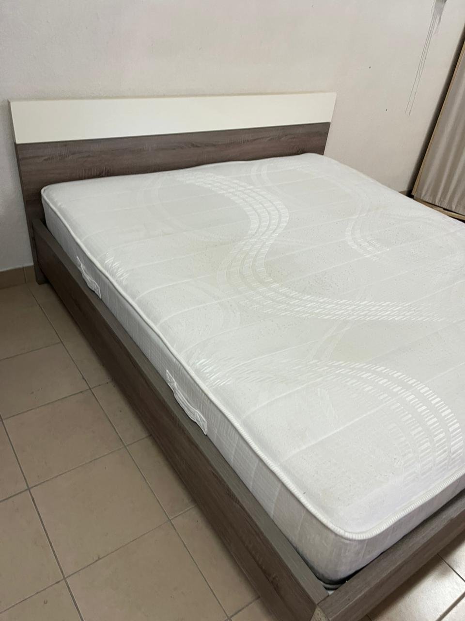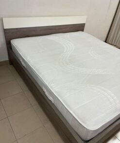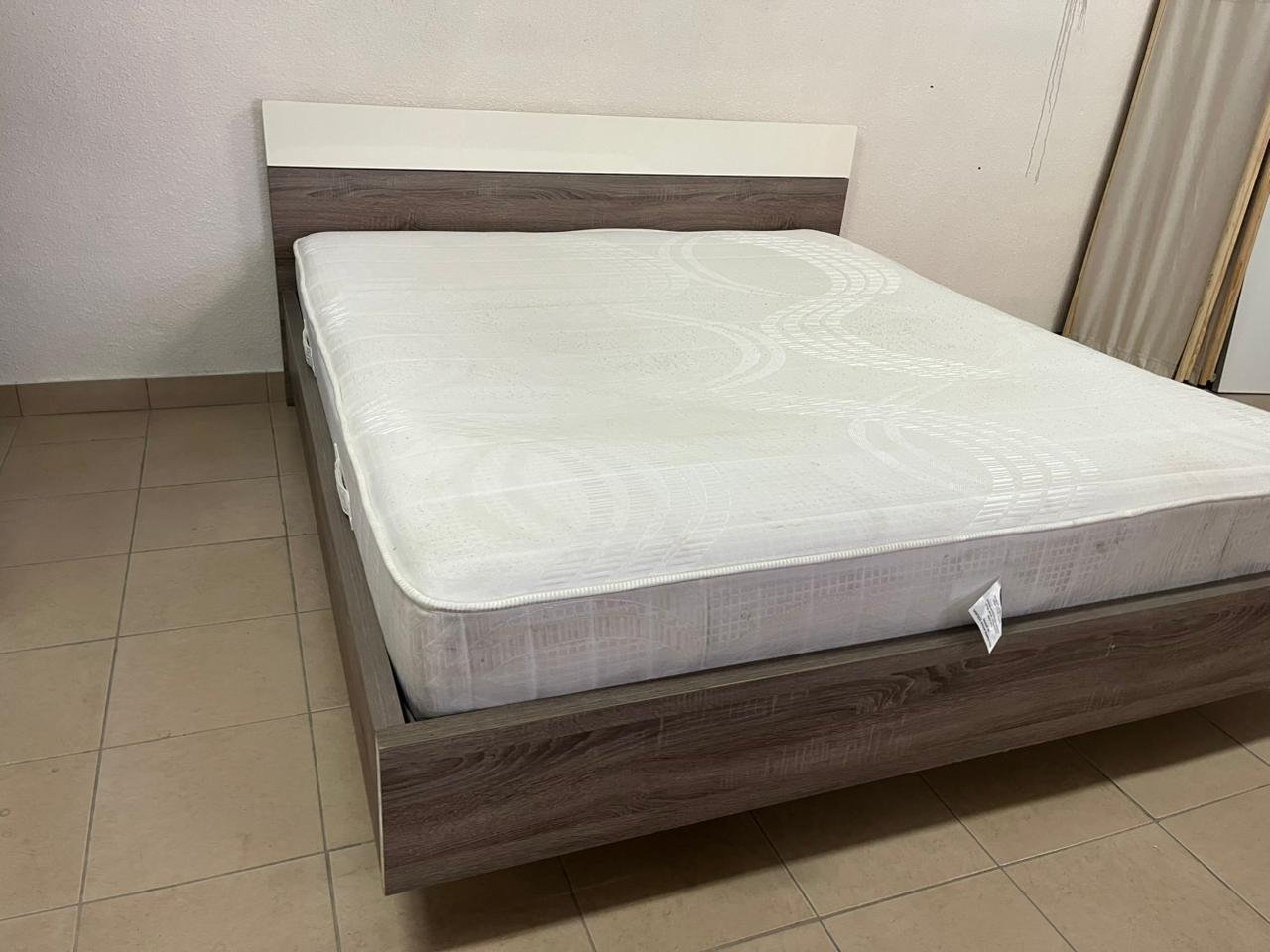 Home Centre double wooden bed with white mattress