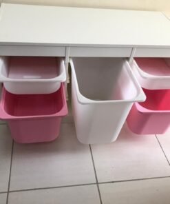 Introducing the TROFAST collection, a delightful solution for the organization and storage of children’s toys. Crafted with sturdy wooden frames and lightweight plastic boxes, this series makes it easy for your child to access, carry, and arrange their playthings with joy and ease.
