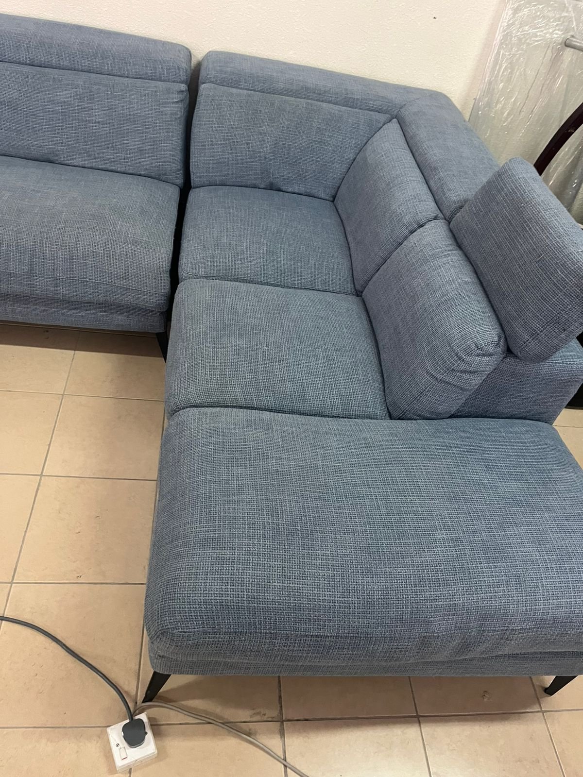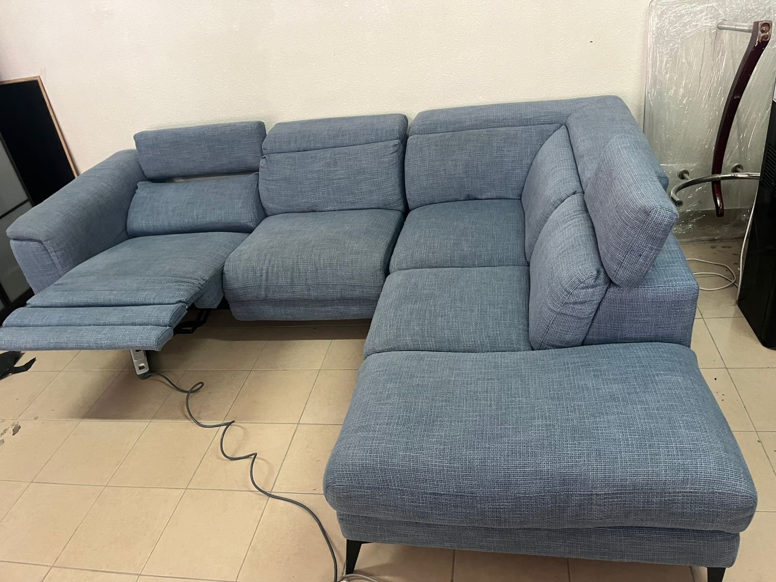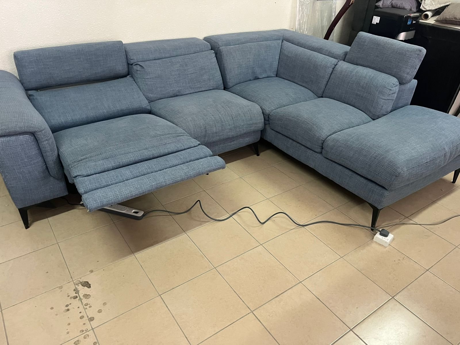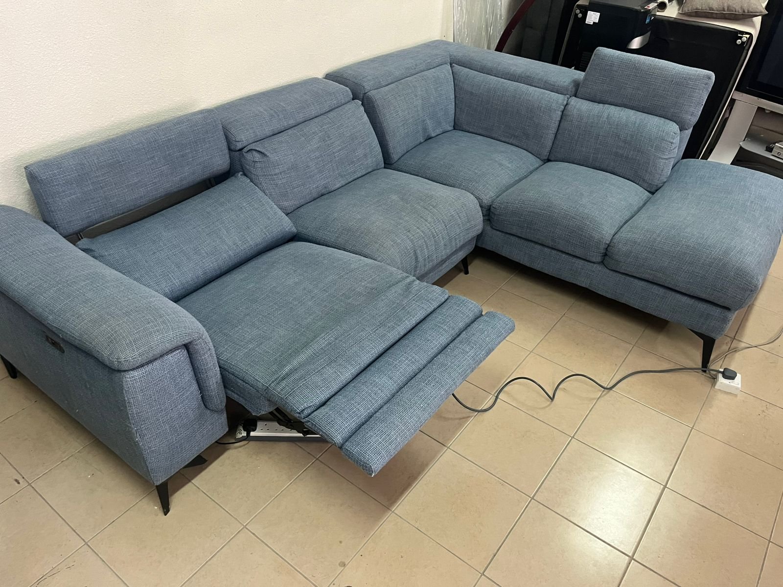 L-shaped corner sofa with electric recliner from United Furniture.