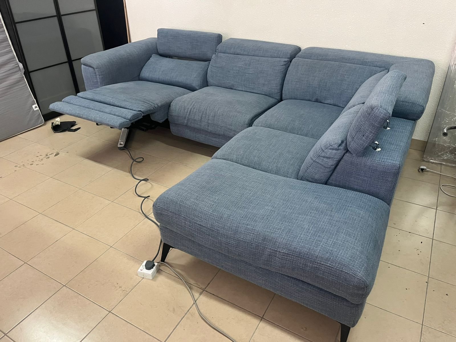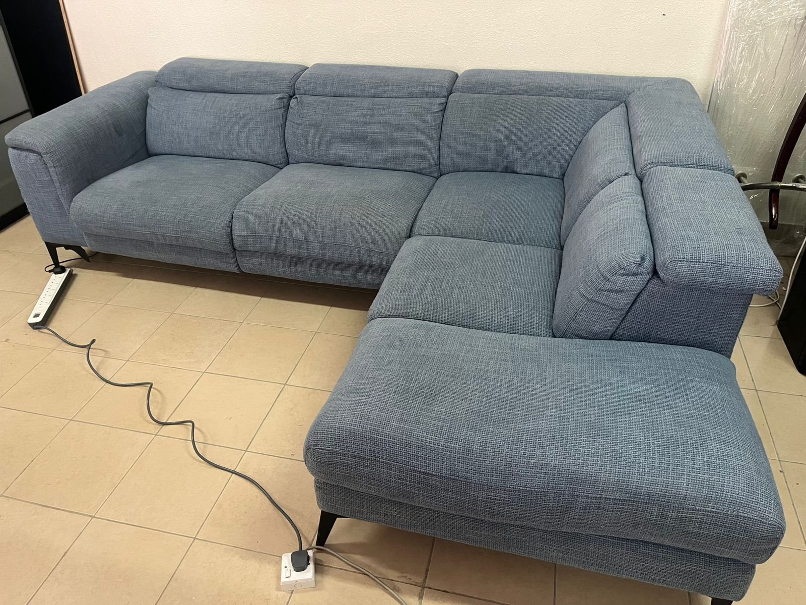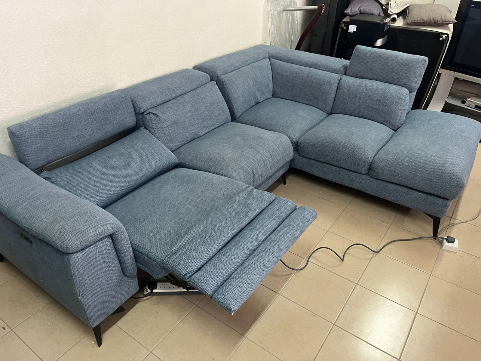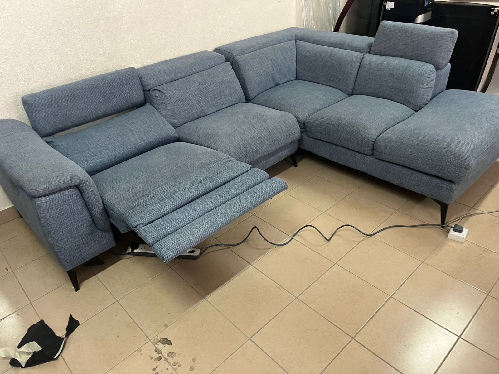 L-shaped corner sofa with electric recliner from United Furniture.