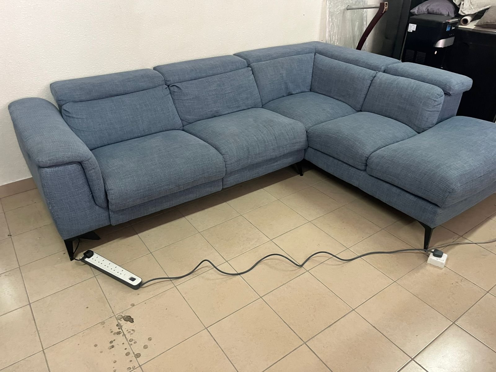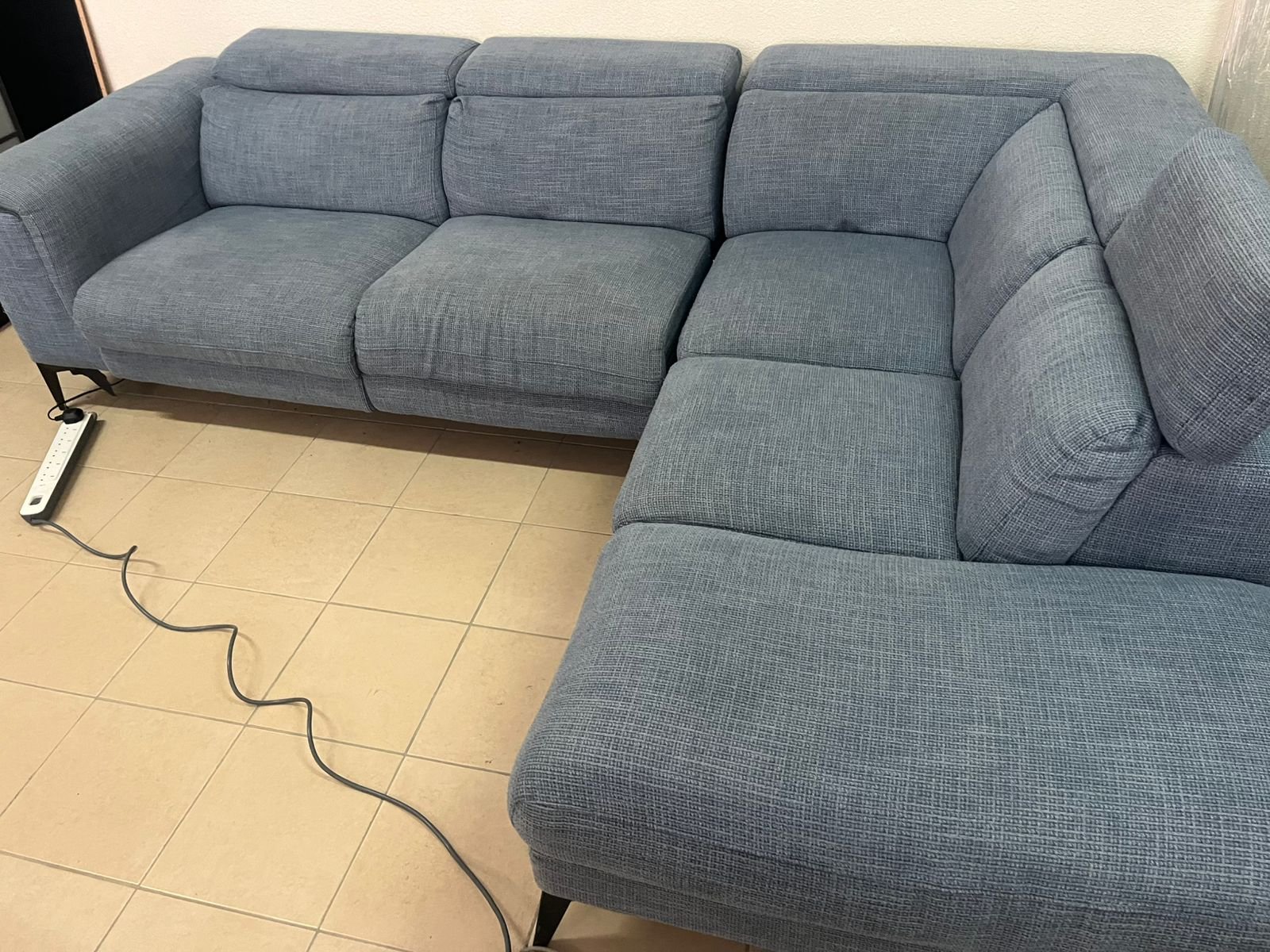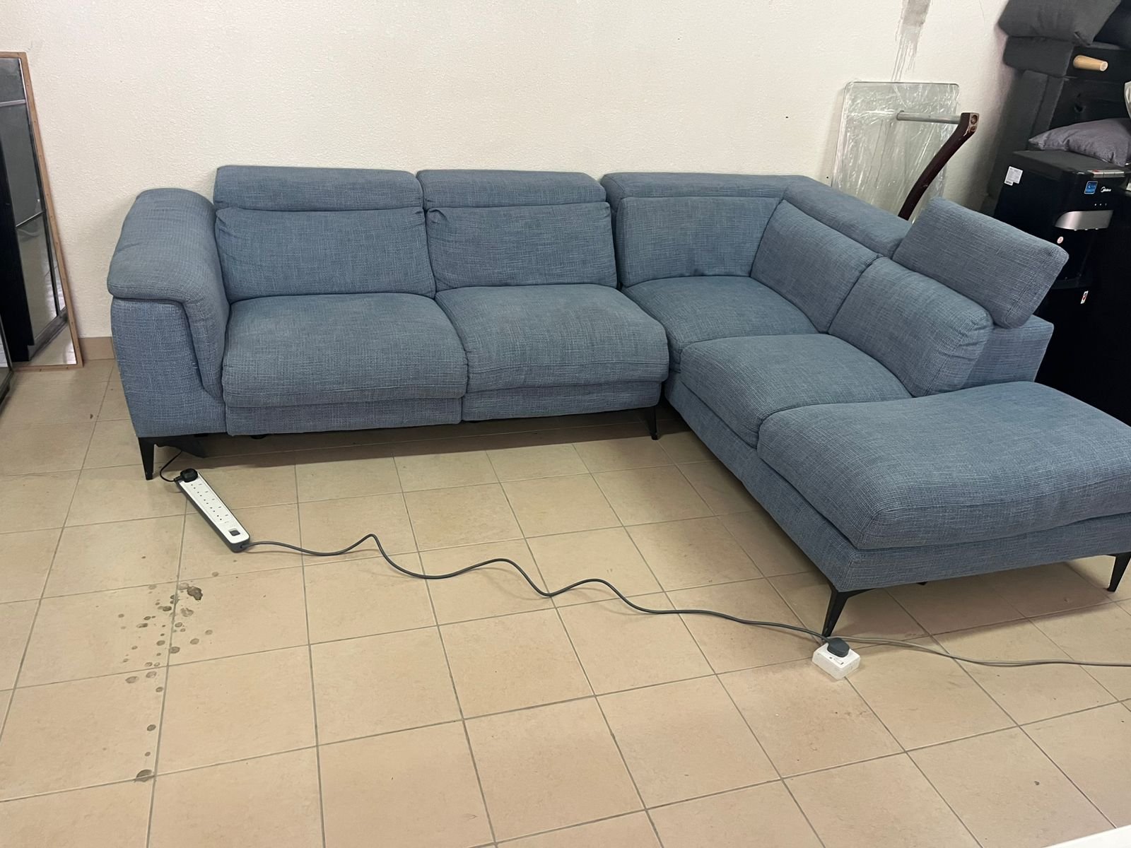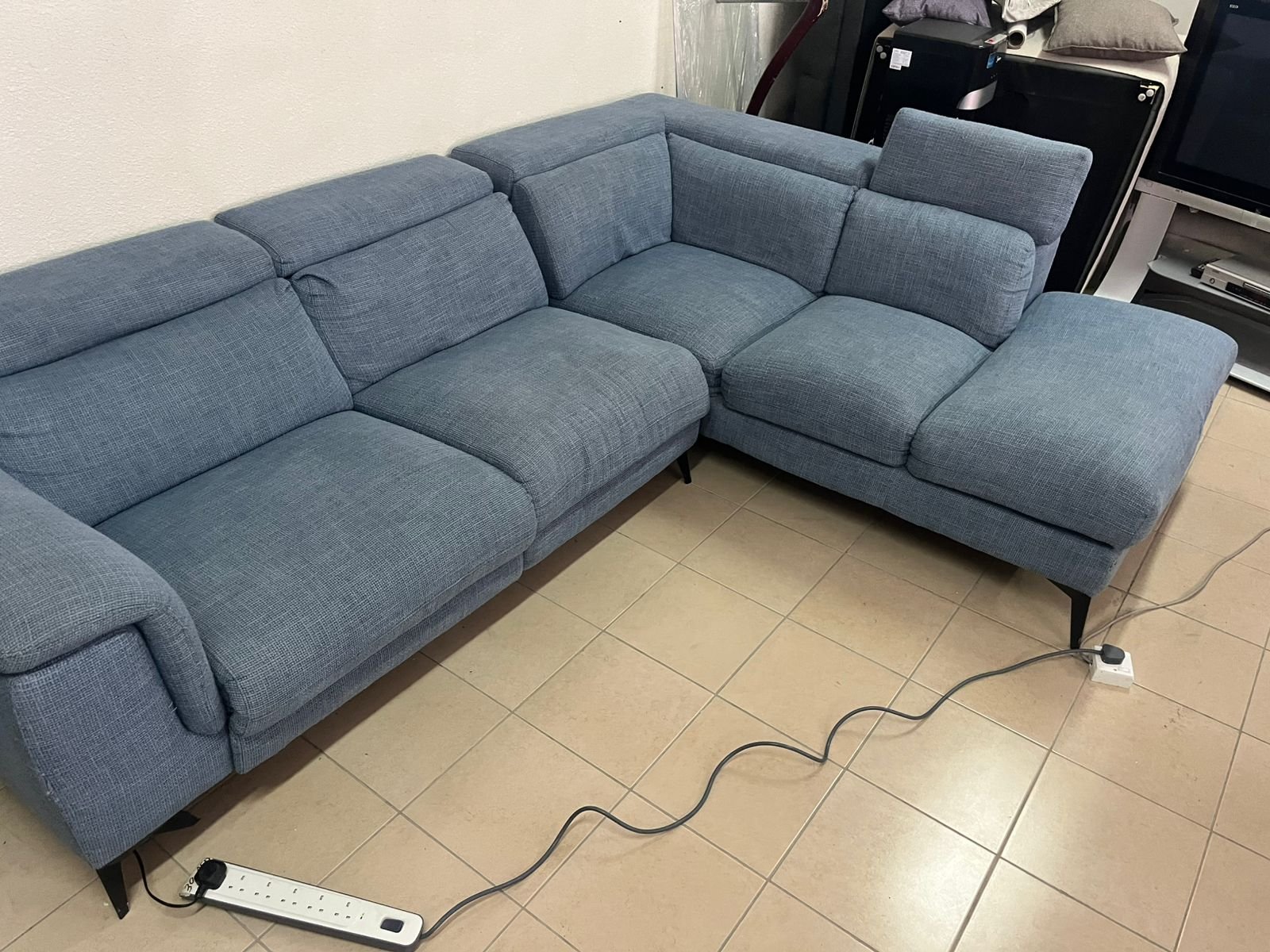L-shaped corner sofa with electric recliner from United Furniture.