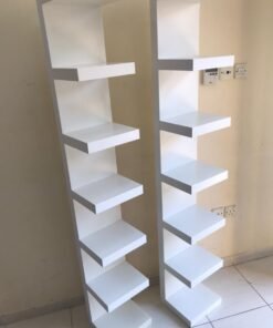 Hanging Storage Shelves: Install hanging shelves vertically on the wall to store small household items, glassware, or crockery. These shelves can be useful in the kitchen or bathroom to keep everyday items close at hand.