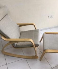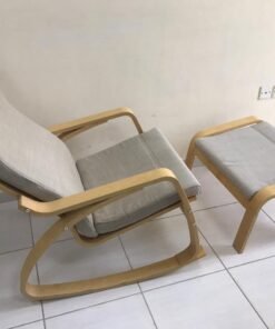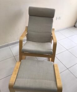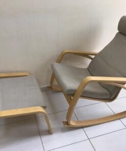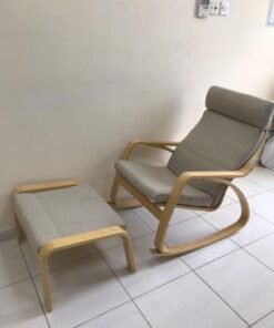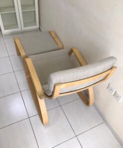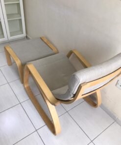 POÄNG Rocking-chair, birch veneer/Hillared beige With footrest