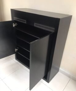 The shoe cabinet from Home Center allows you to organize your shoes perfectly, featuring adjustable shelves and multiple drawers, enabling you to store shoes according to size and type in an organized and tidy manner.