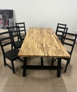 SKOGSTA / NORDVIKEN طاولة و 6 كراسي, سنط/أسود, ‎235×100 سم