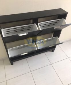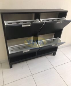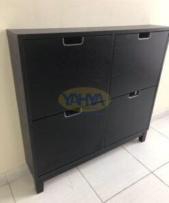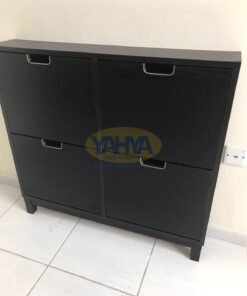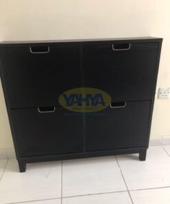 Introducing the STÄLL Shoe Cabinet with 4 Compartments in a sleek black finish. Elevate your footwear storage with the STÄLL shoe cabinet, designed to revolutionize the way you organize your shoes while adding a touch of sophistication to your space. Crafted for both style and functionality, this cabinet is the ultimate solution for those seeking quality and order in their hallway.