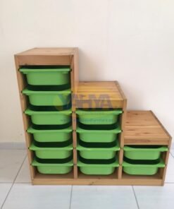 Children need room for play – and good storage for toys like TROFAST – a series of sturdy wooden frames and lightweight plastic boxes that your child can easily slide out, carry and put back again