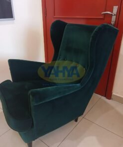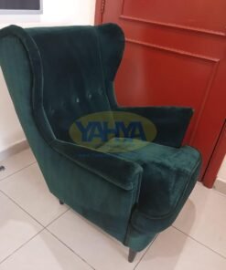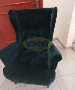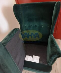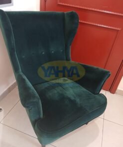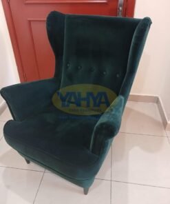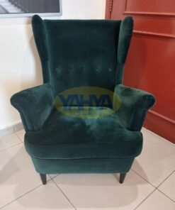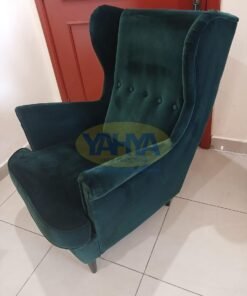 Get ready for a unique experience with the STRANDMON Wing Chair in dark green color and the velvet fabric cover, Djuparp. This chair exudes a warm and endearing touch, combining its tall back that offers extra neck support, rounded armrests, smooth lines, and captivating upholstery. It’s a design that harmoniously blends traditional elegance with contemporary comfort, providing you with moments of comfort that are truly worth cherishing.
