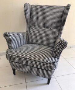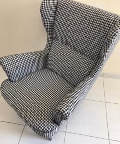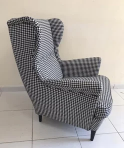Prepare yourself for a unique experience with the STRANDMON wing chair and the luxurious cover of the famous fabric. This chair radiates a welcoming and affectionate aura, uniting a high-rise backrest for added neck support, elegantly curved armrests, elegant lines, and attractive upholstery. It seamlessly combines classic elegance with contemporary comfort, offering promising moments of relaxation that are truly worth appreciating.