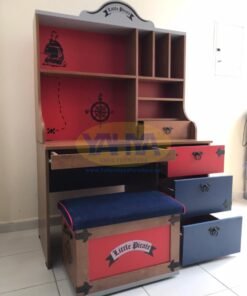 Transform your child’s study environment with the breathtaking children’s used furniture – the Little Pirates study desk. It stands as an emblem of an ideal mix of a captivating pirate-themed design and functional utility, resonating perfectly with your child’s academic aspirations. This uniquely crafted piece not only accentuates the room’s ambience but promises an adventurous academic journey, akin to that of pirates sailing the high seas.