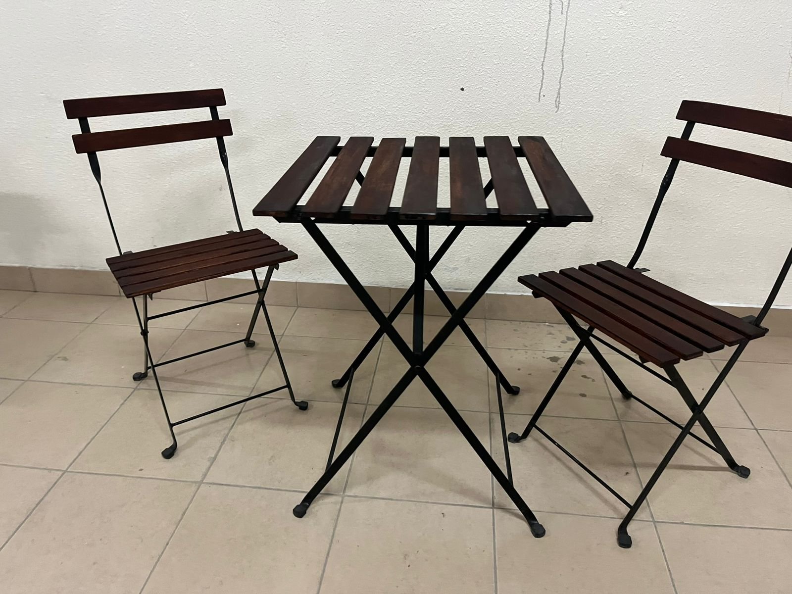TÄRNÖ Table+2 chairs, outdoor, black/light brown stained