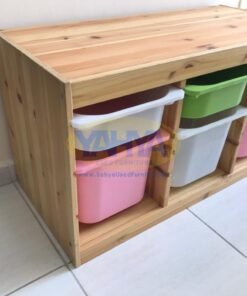 The TROFAST series is a perfect and fun storage and organization solution for children’s toys. Comprised of sturdy wooden frames and lightweight plastic boxes, this series allows your child to pull it out, carry it around, and put it back together with ease.