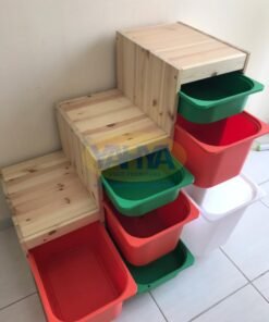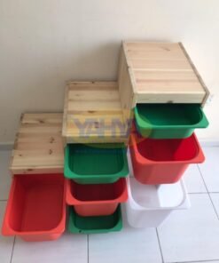 The plastic containers, elegantly attached to the frames, come in various sizes – a haven for an array of toys and supplies. The containers are easily removable for playtime and can be returned to their designated spots after the adventure.