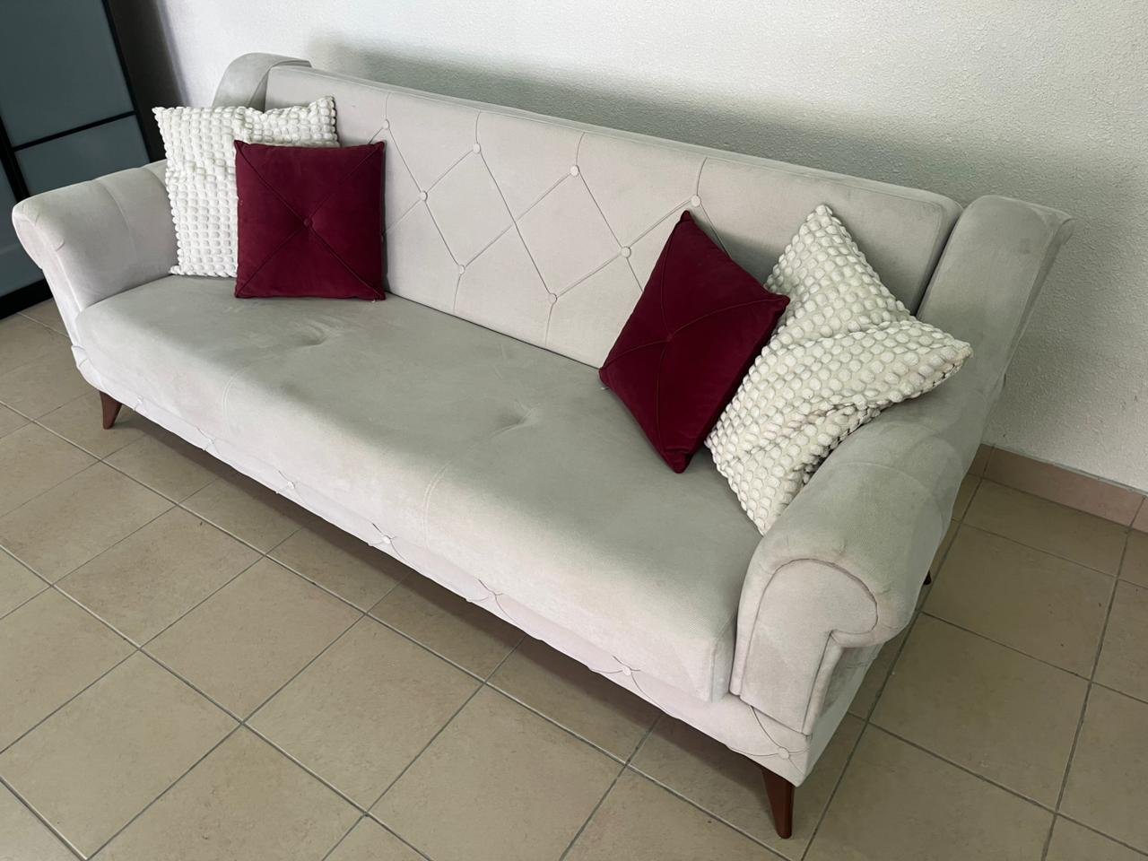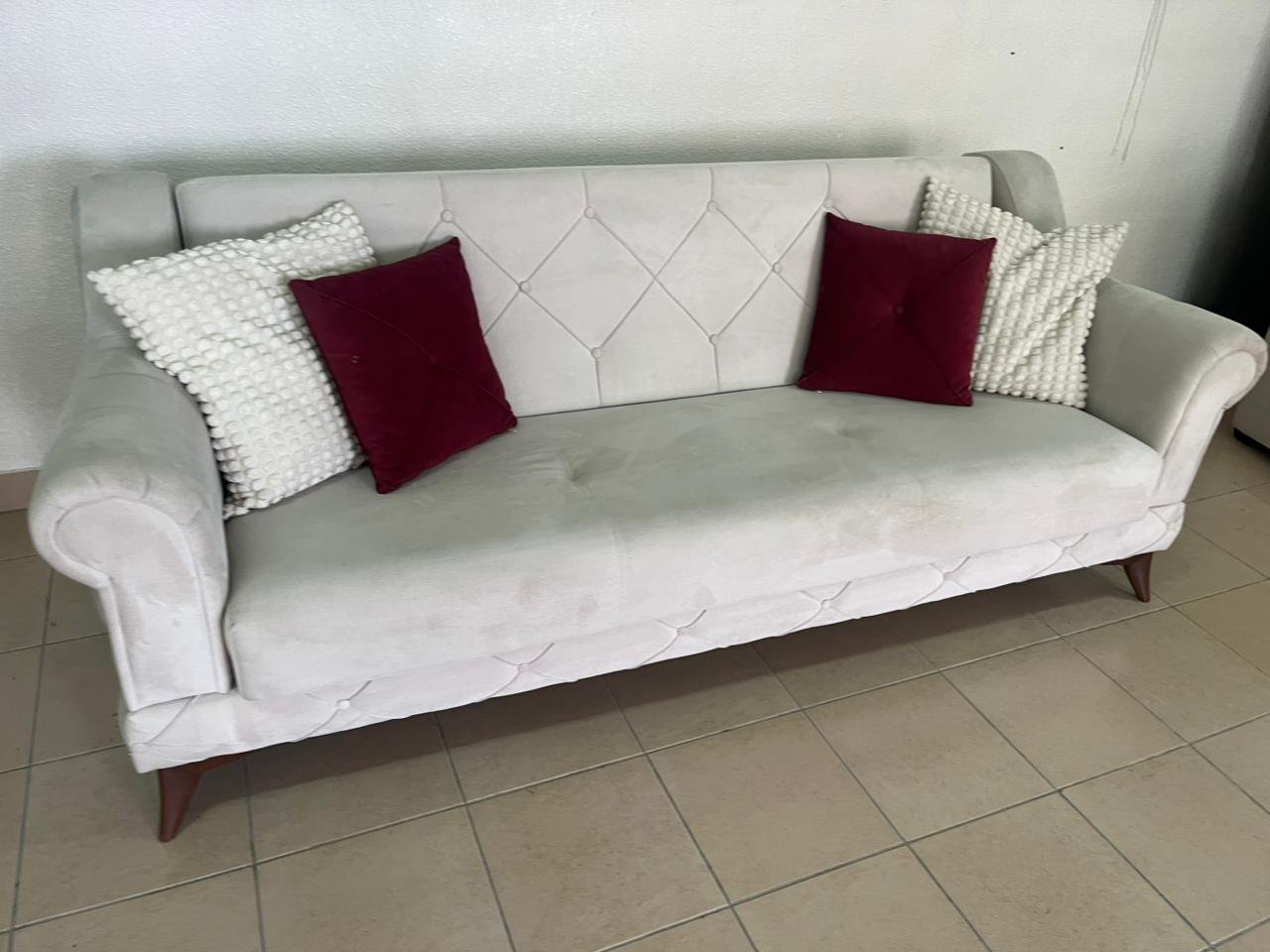 Turkish sofa bed, white fabric, classic design