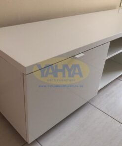 With open storage it’s easier to get an overview, and with closed storage you can keep things nice and tidy. This TV bench has both, and an adjustable shelf in each section too