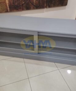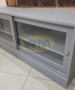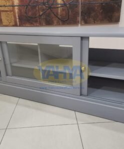 The built-in smart cable management system is a lifesaver for keeping unruly cables hidden, while the remote control functionality through the glass allows you to control your devices even with the sliding doors closed. These sliding doors are designed to save space when opened, adding to the practicality and aesthetics of this second hand furniture near me.