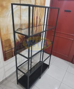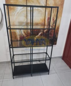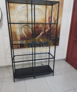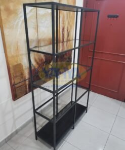 The straightforward design and glass shelves make your beloved objects stand out. The top and bottom panels are black-brown on one side and black on the other – choose the expression that suits you best.