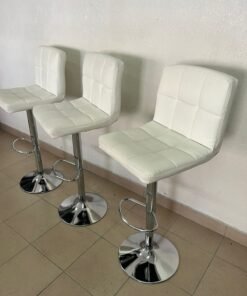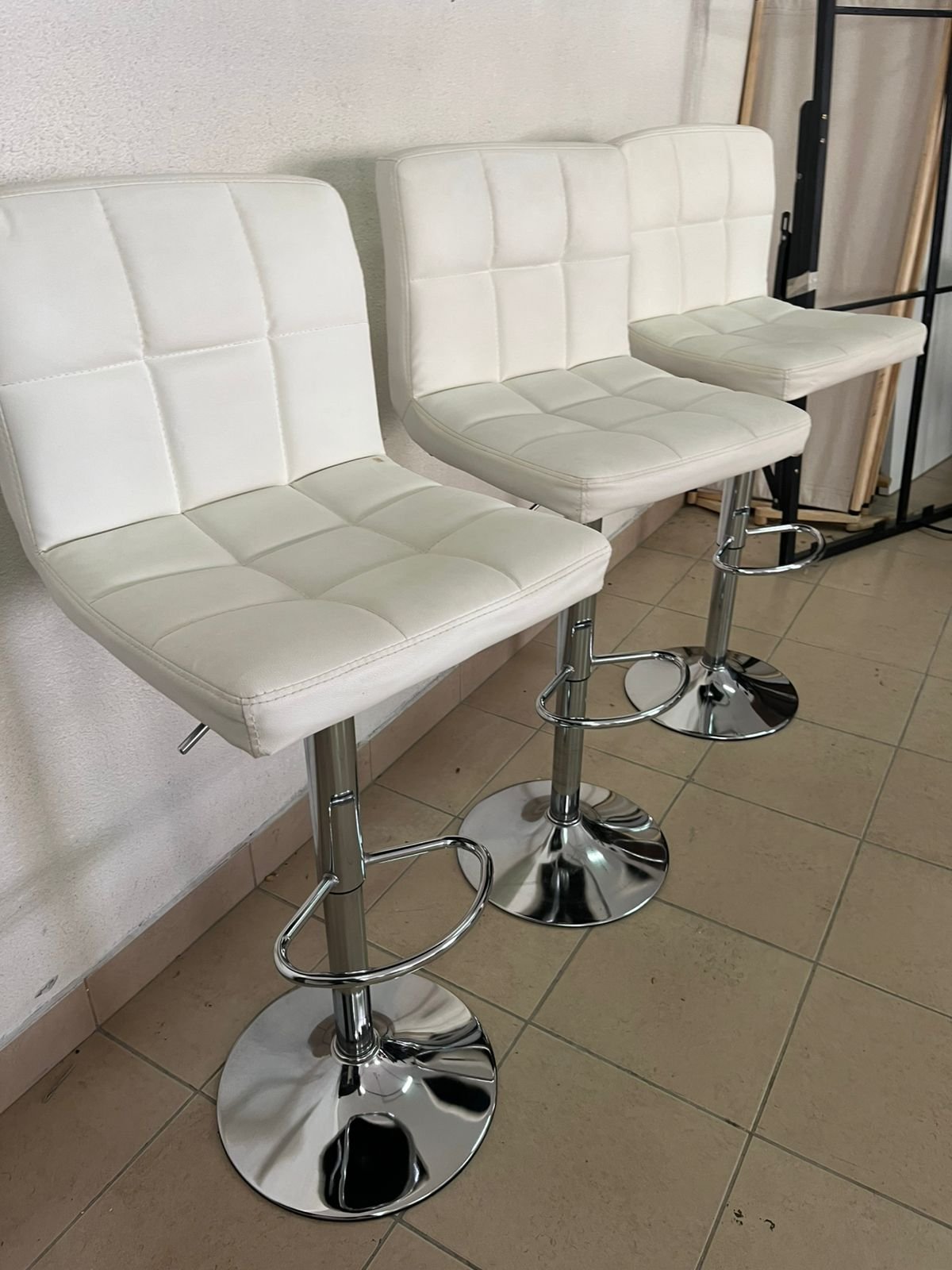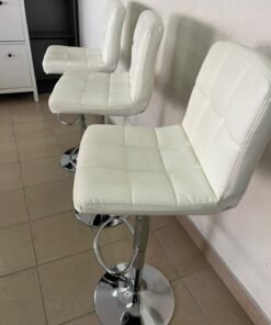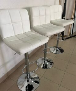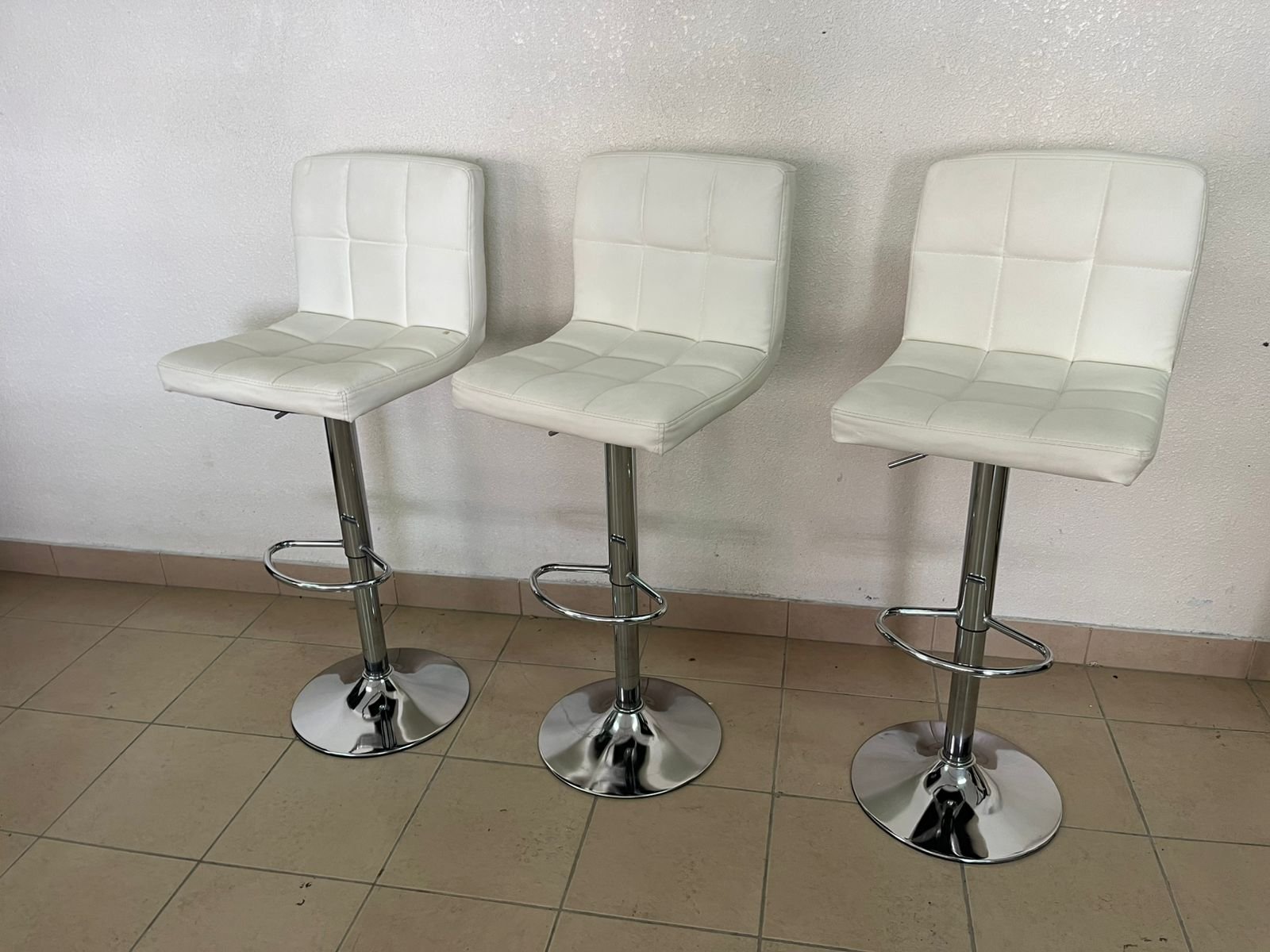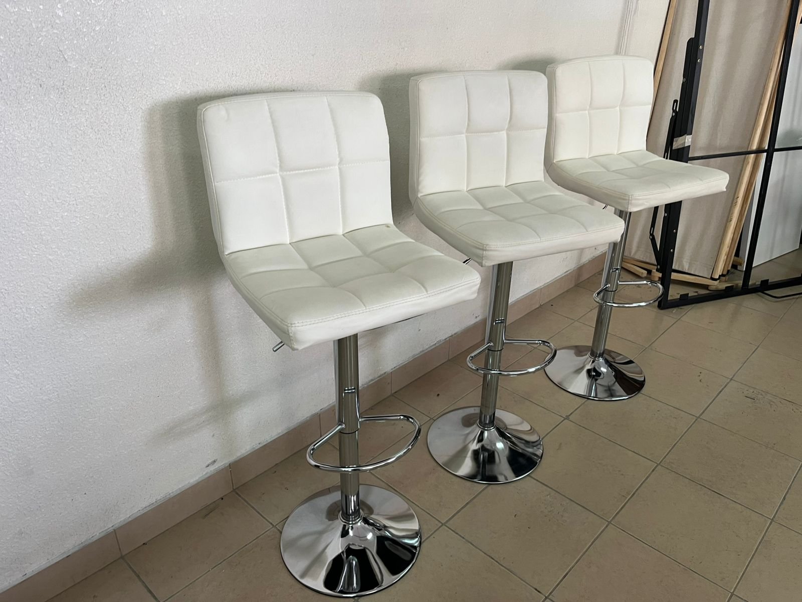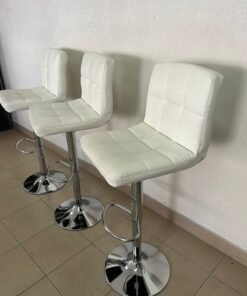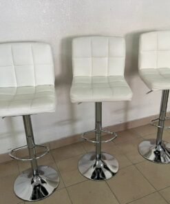 White bar stools with upholstered backrests
