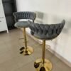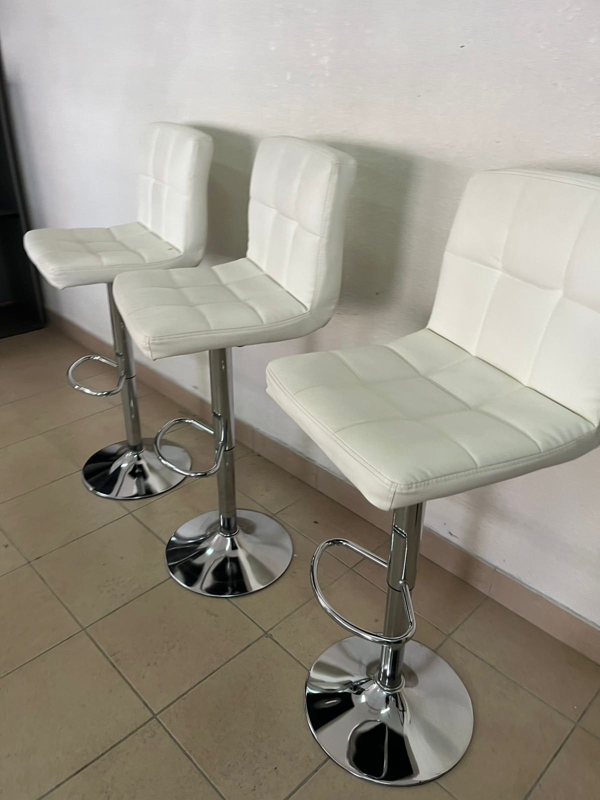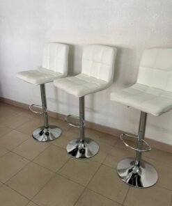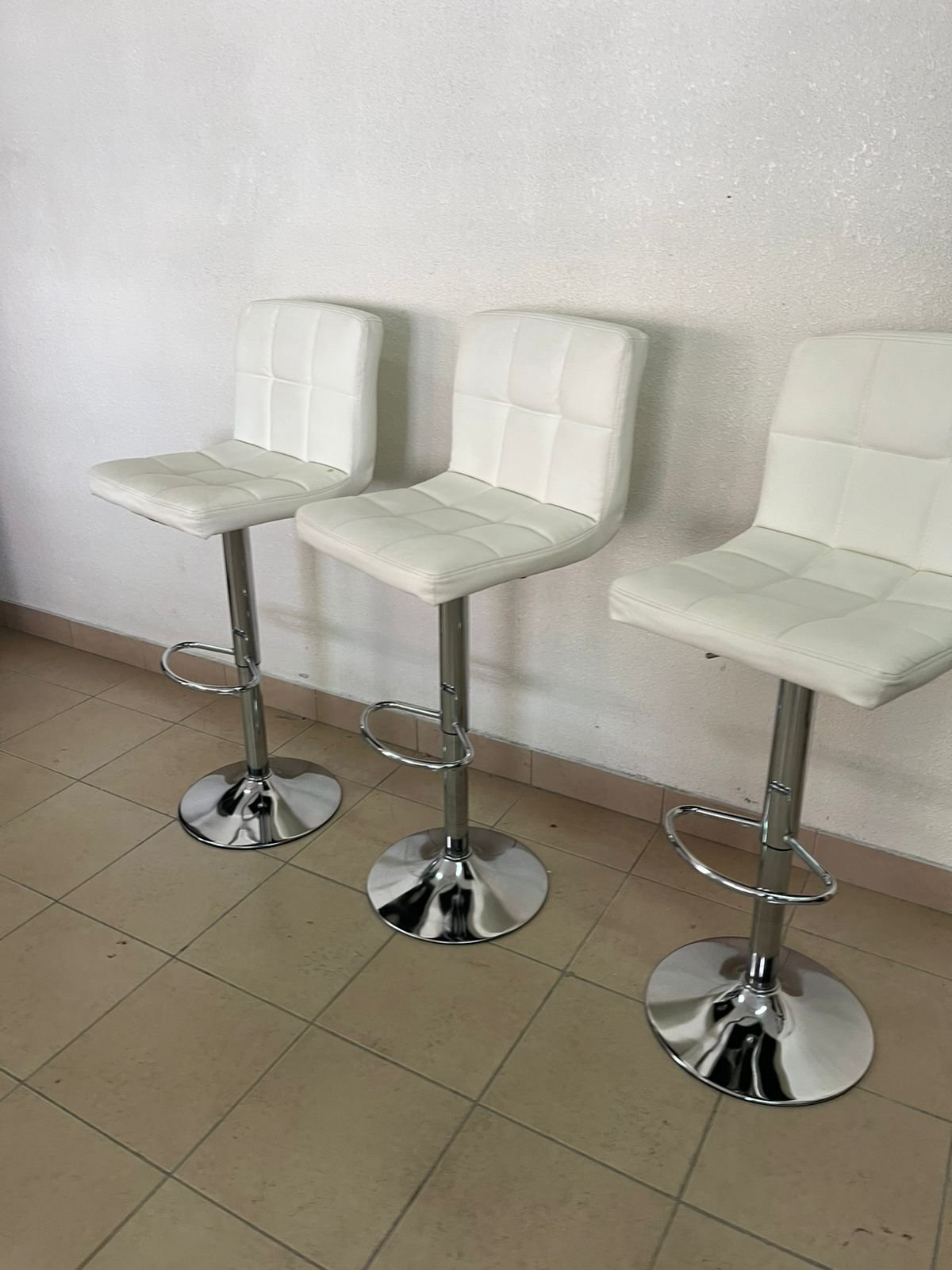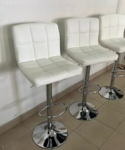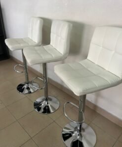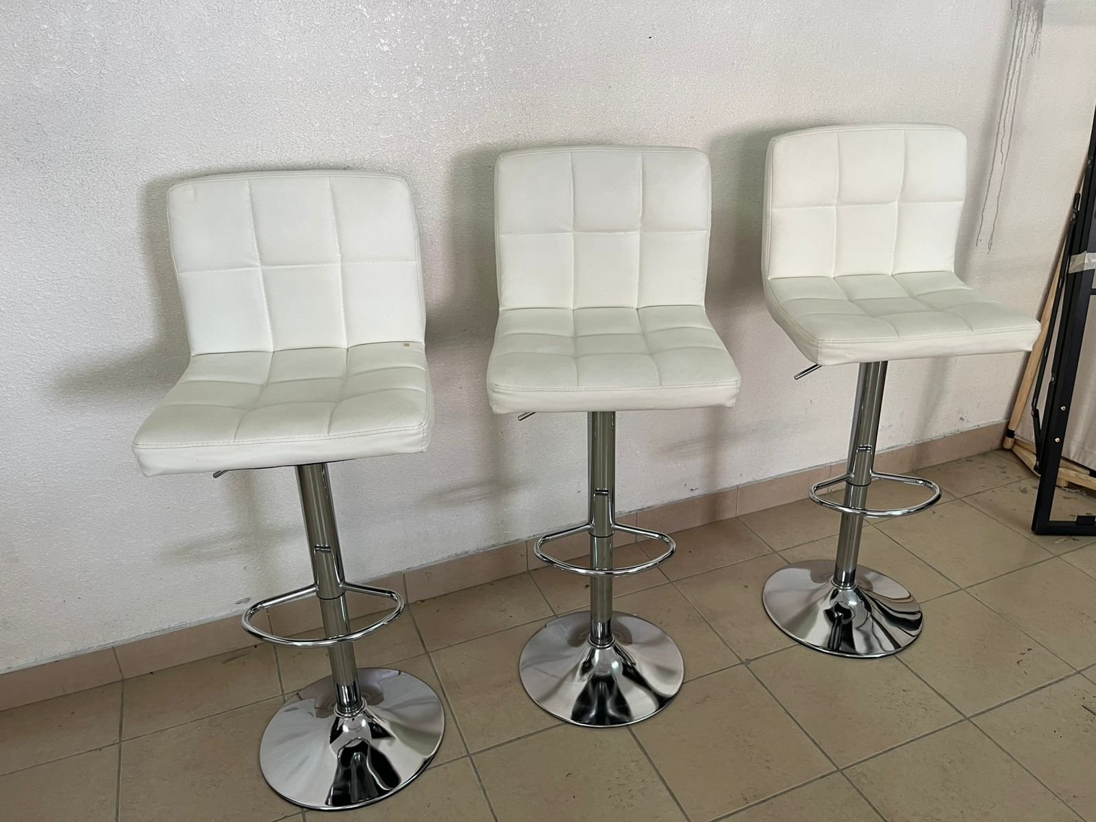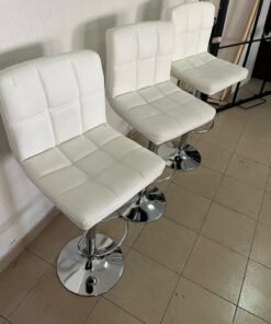 White bar stools with upholstered backrests